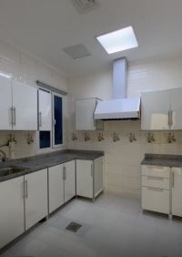 For rent: An apartment in Al-Sadeeq, first floor with elevator. It consists of 3 bedrooms including a master bedroom, a living room, a fully equipped kitchen, a maid's room, 3 bathrooms, deluxe finishing, and 2 shaded parking spaces. Rent is 450 dinars. For contact.