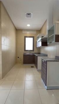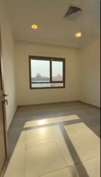 For rent, an apartment in Al Zahra, second floor with elevator, super deluxe finishing. It consists of 3 bedrooms, including a master bedroom and 2 others with a bathroom between them, a large living room, shutters, a fully equipped kitchen, a maid's room with its own bathroom, and two shaded car parking spaces. Rent is 550 KD. For contact.
