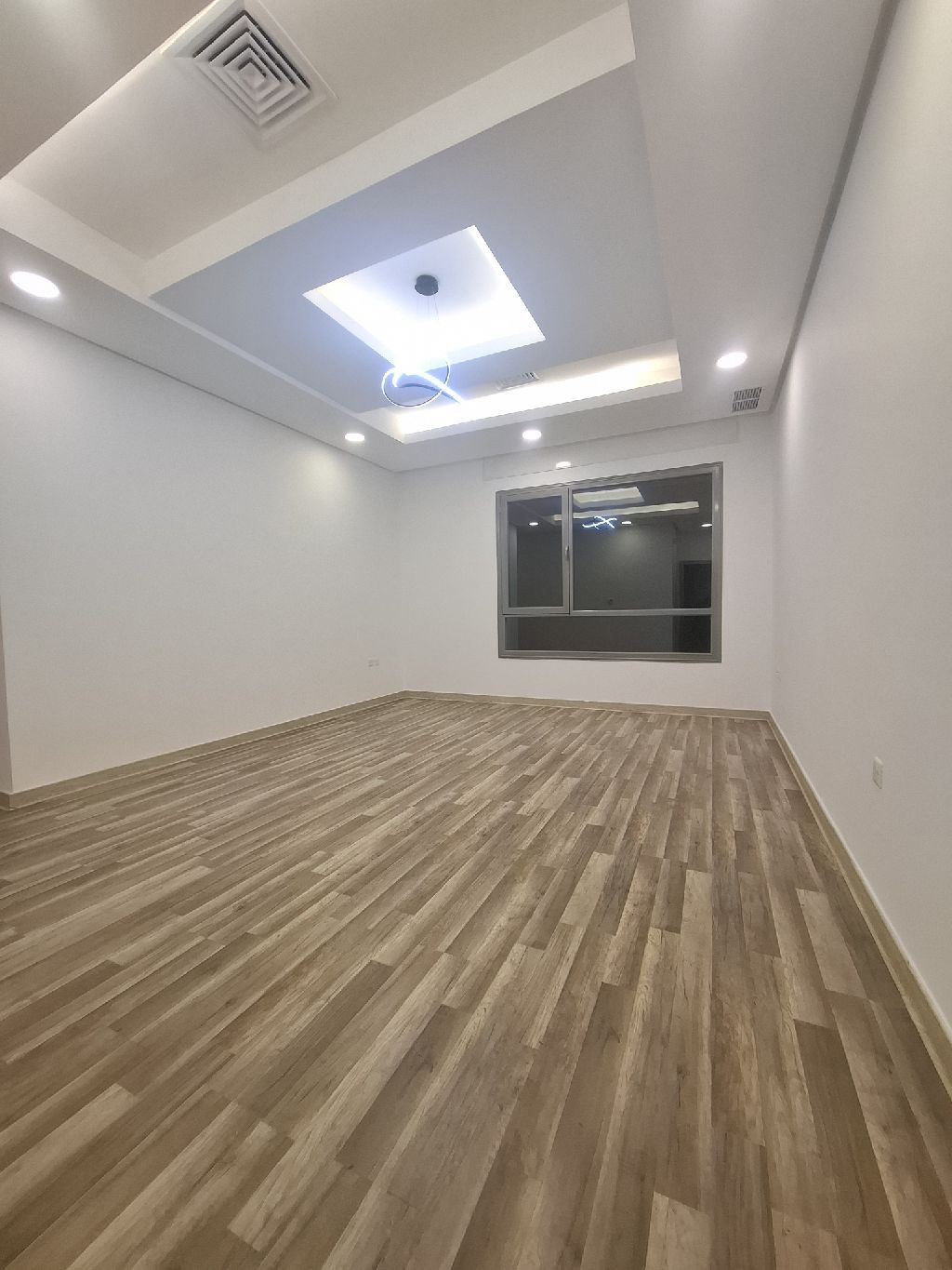 For rent in Hitteen, a second-floor apartment with an elevator. Finishing: Modern. 3 bedrooms, including a master bedroom, and two other bedrooms served by a bathroom. Living room, equipped kitchen, maid's room with a bathroom. Blinds, central A/C, two car parking spaces. Rent: 550 KD. For contact.