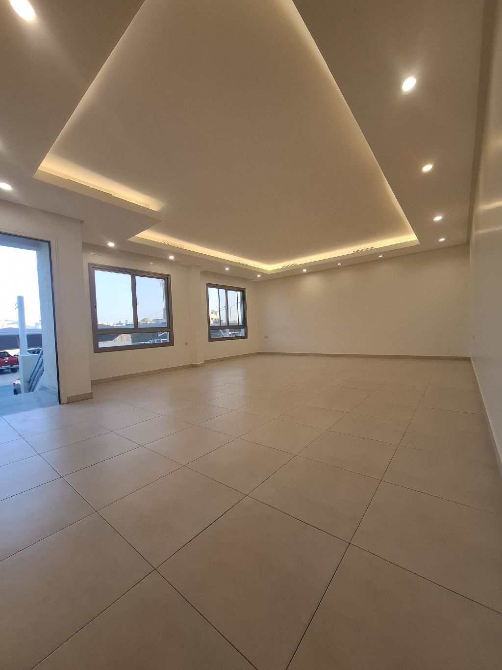 A ground floor apartment in Al-Salam with a private entrance and a service entrance. It features large spaces, modern finishing, and a driver's room with a bathroom. The layout includes 4 master bedrooms, a large living room, a guest bathroom with sinks, a fully equipped kitchen, a laundry room, a storage room, and a maid's room with a bathroom. It has shutters, 6 shower box bathrooms, central air conditioning, and 3 shaded parking spaces. Easy access and exit, opposite services. Rent is 1100 KD with a refundable security deposit. For contact.
