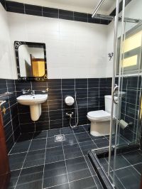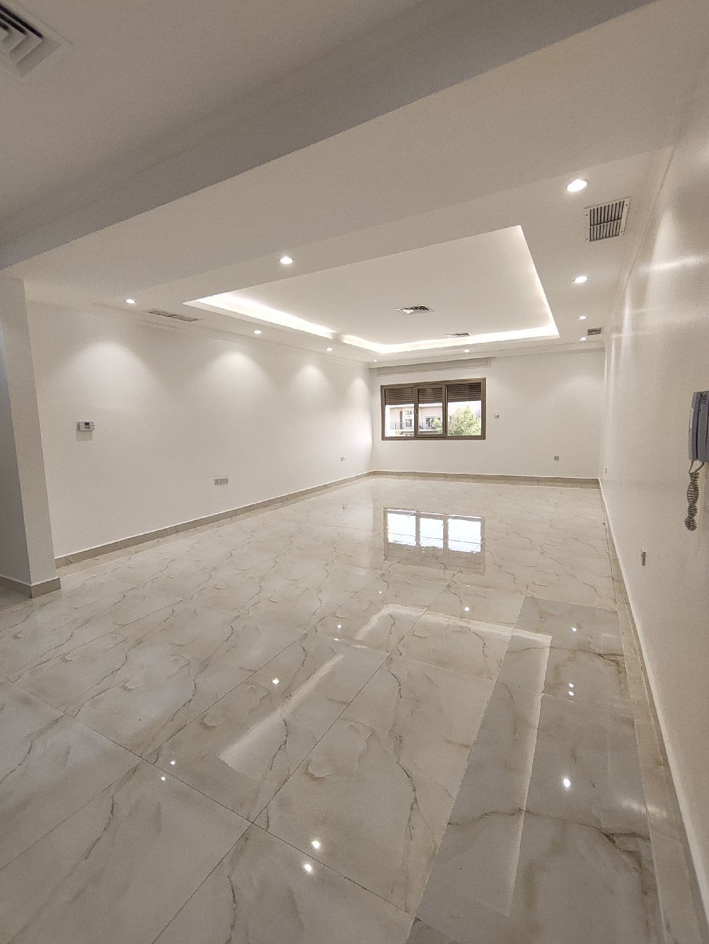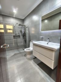 For rent: An apartment in Al Rawda, first floor with an elevator. It has large and ready areas, consisting of 4 master bedrooms, in addition to a maid's room with a bathroom, a large living room with a guest bathroom, a fully equipped kitchen, a laundry room, and a storage room. It includes 6 shower boxes, central air conditioning, and 3 shaded parking spaces. Rent is 900 KWD. For contact.