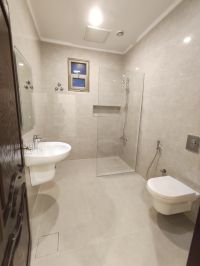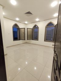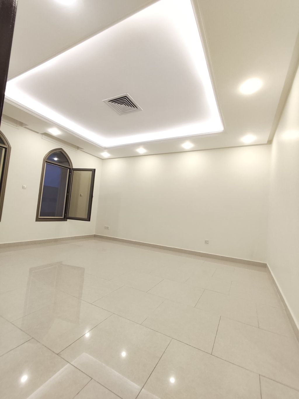 For rent, an apartment in Al Rawda, Area 5, consisting of 3 rooms including a master bedroom, a living room, a fully equipped kitchen, a maid's room with a bathroom, on the second floor, with an elevator, 2 adjacent car parking spaces, central air conditioning, and satellite. The rent is 600 dinars.