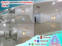 For rent in Al-Rumaithiya, Block 6, a ground floor apartment with super deluxe finishing - prime location - close to Al-Taawun Street - 4 bedrooms (including two master bedrooms - two bedrooms share a bathroom) large living room - maid's room with bathroom - equipped kitchen - shaded parking. Rent 600 KD. For inquiries.