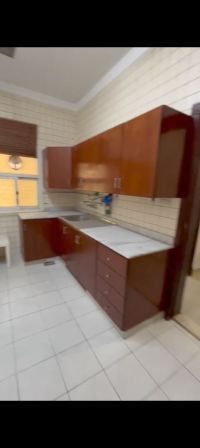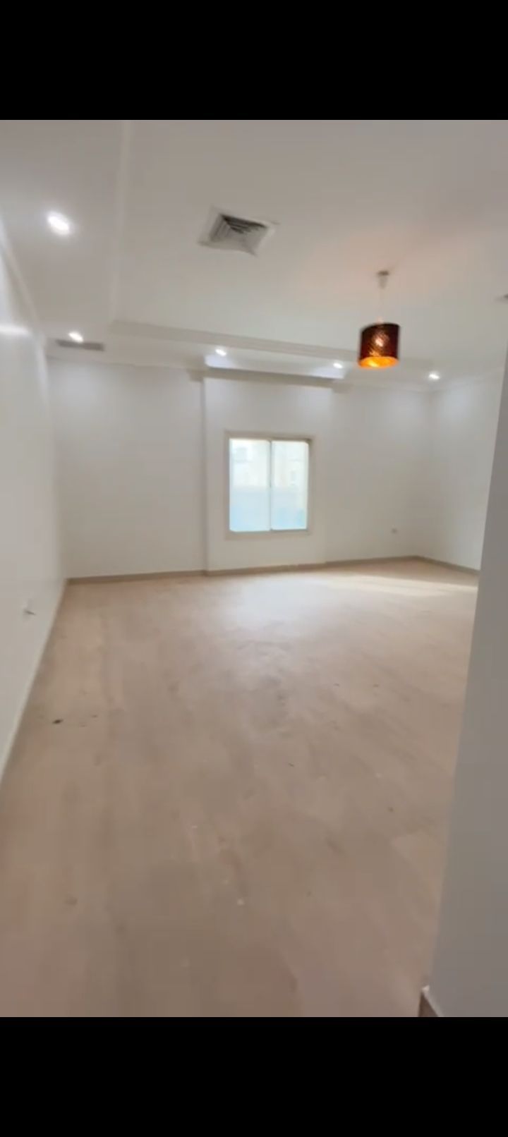 For rent in Al-Salam, an apartment on the first floor with an elevator. It consists of a large living room with a guest bathroom, 3 bedrooms including 1 master bedroom and two bedrooms sharing a bathroom, a furnished kitchen, a maid's room with a bathroom, a laundry room, and two parking spaces one behind the other. Rent is 500 Kuwaiti dinars. Brokers are prohibited.