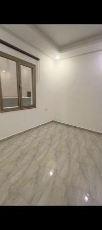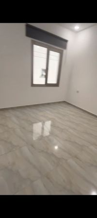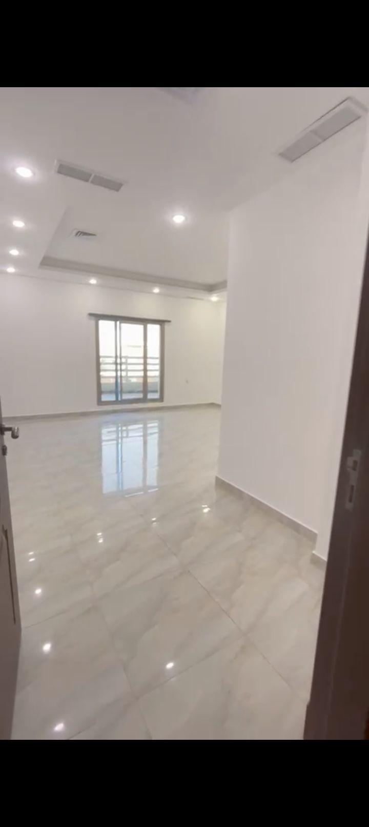 For rent: An apartment in Al-Sadeeq with a balcony on the first floor, equipped with an elevator. It consists of a living room, 3 bedrooms (including one master bedroom) with two sharing a bathroom, a fitted kitchen, a maid's room with a bathroom, shaded parking, and central air conditioning. Rent is 550 Kuwaiti dinars. Brokers are prohibited.