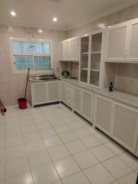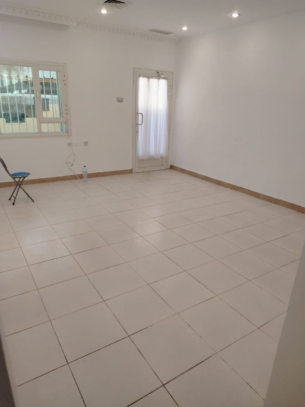 For rent in Al-Surra, a ground floor apartment consisting of a master bedroom, two bedrooms with a shared bathroom, a living room, and a furnished kitchen. No maid's room. Rent is 450. Brokers are prohibited.
