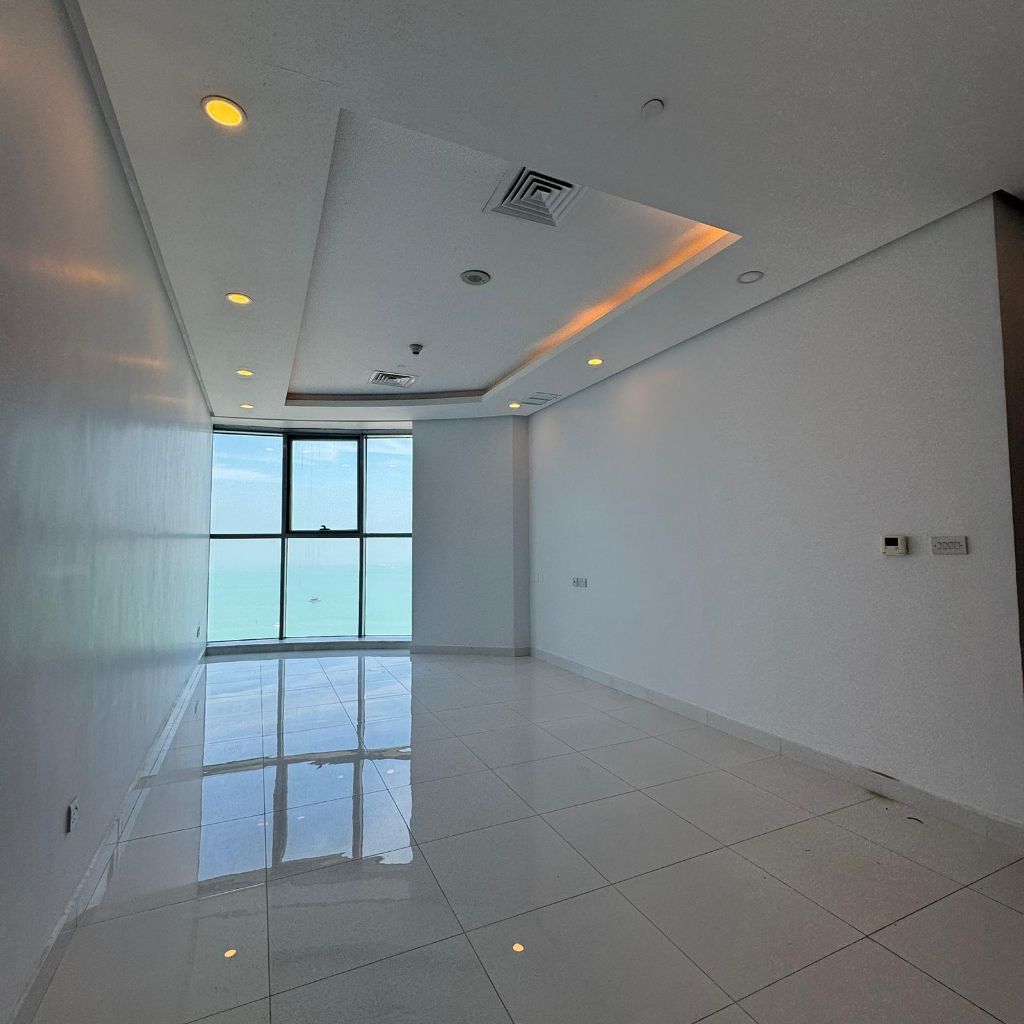 An apartment with a sea view for rent in Salmiya, prime location, excellent finishing, direct sea view, easy access, consisting of a hall, equipped American kitchen, two master bedrooms, total of 3 bathrooms including a guest bathroom, laundry room, dedicated shaded parking space, elevators, surveillance cameras, includes water and maintenance, electricity is the tenant's responsibility. Rent starts from 600 Kuwaiti dinars, one month's rent as security deposit + company commission.
