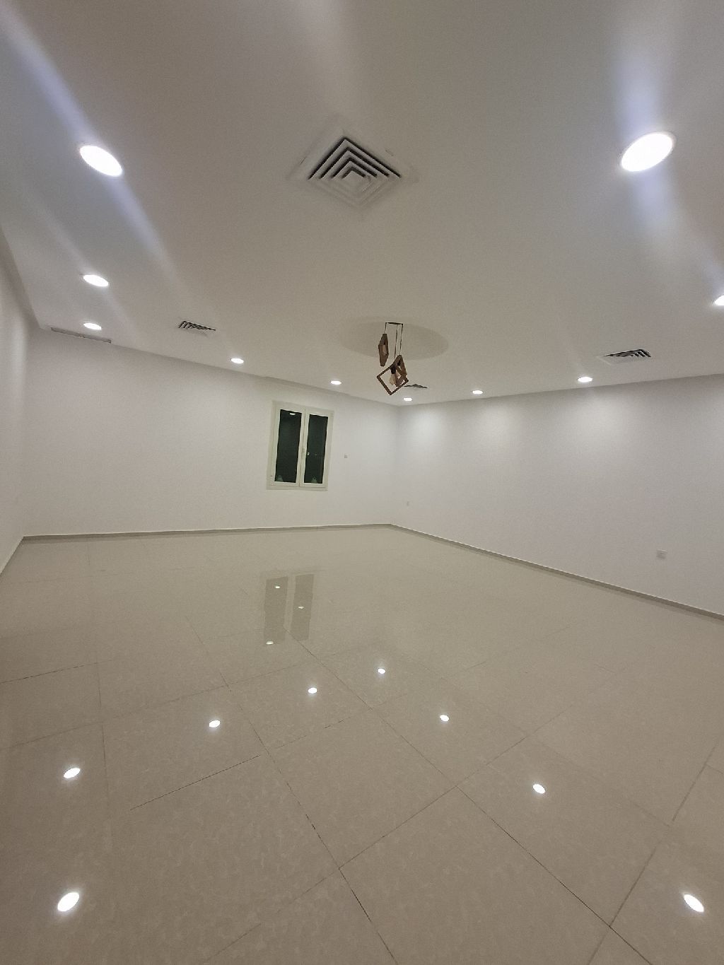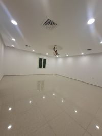 For rent: a floor in Al-Khalidiya (Owner requests Kuwaiti families only). Very prime location, high-end finishing, large spaces, third floor, elevator, 5 bedrooms including a master bedroom, large living room, equipped kitchen, maid's room, 4 bathrooms, air conditioning, central satellite system, two shaded car parking spaces. Rent: 900 dinars. For contact: Abu Sultan.