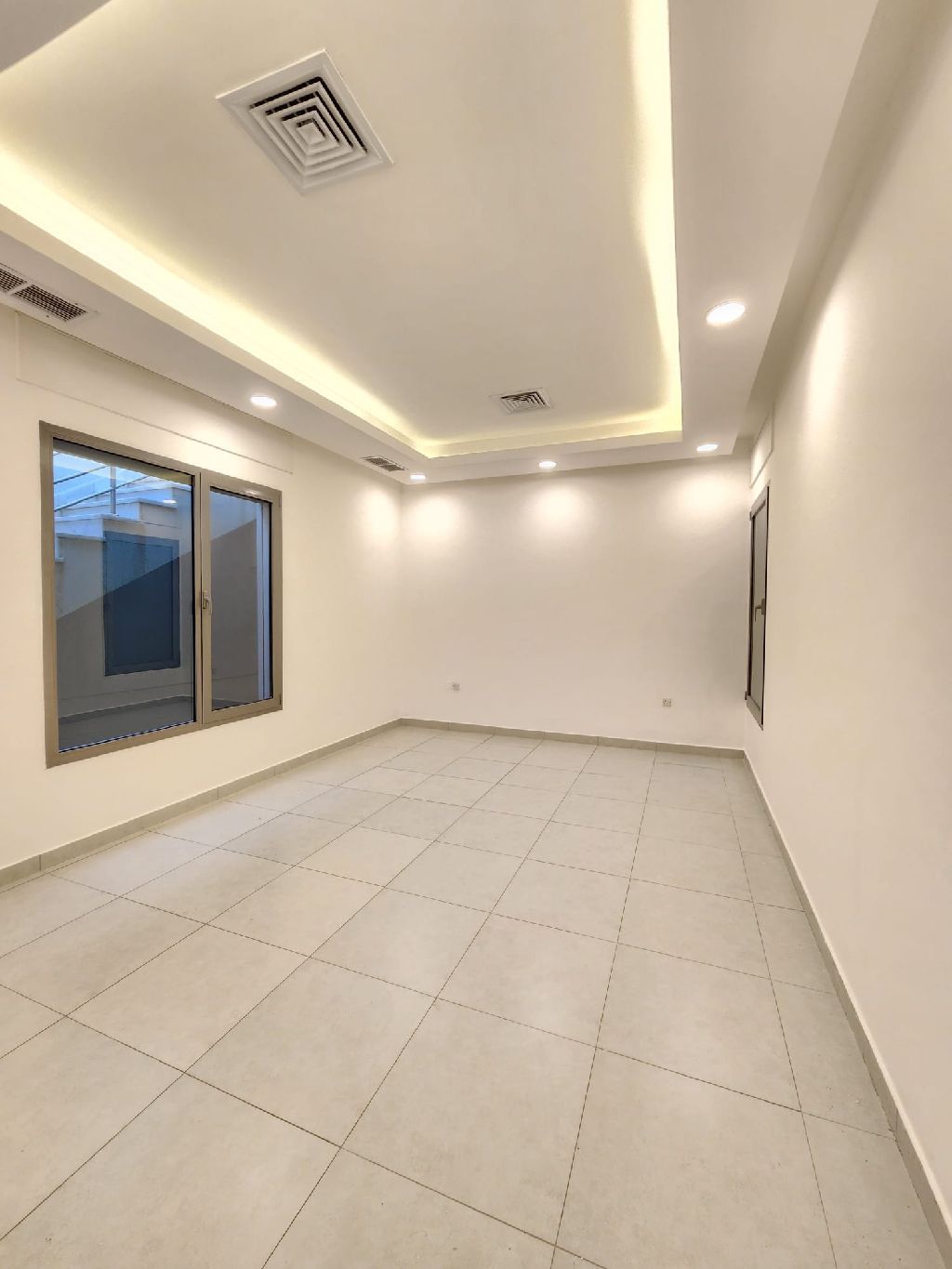 For rent in Al-Salam, a basement apartment with a private entrance, a courtyard, large areas, a 4-bedroom system including two master bedrooms, a bathroom between two rooms, a living room, a fully equipped kitchen, a maid's room with a bathroom, shutters, a shower box, central air conditioning, two car parking spaces. Rent: 650 KD. For contact.