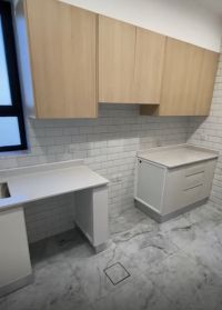 For rent: New apartments in Al Zahra, first occupancy, VIP finishing. Consists of 3 bedrooms including a master bedroom, living room, equipped kitchen, maid's room, laundry room, and 3 bathrooms. Prices: Ground floor 650, first floor 600, second floor 600, basement 600, roof 650 dinars. Two shaded parking spots, separate entrance and exit, very easy access. For inquiries.