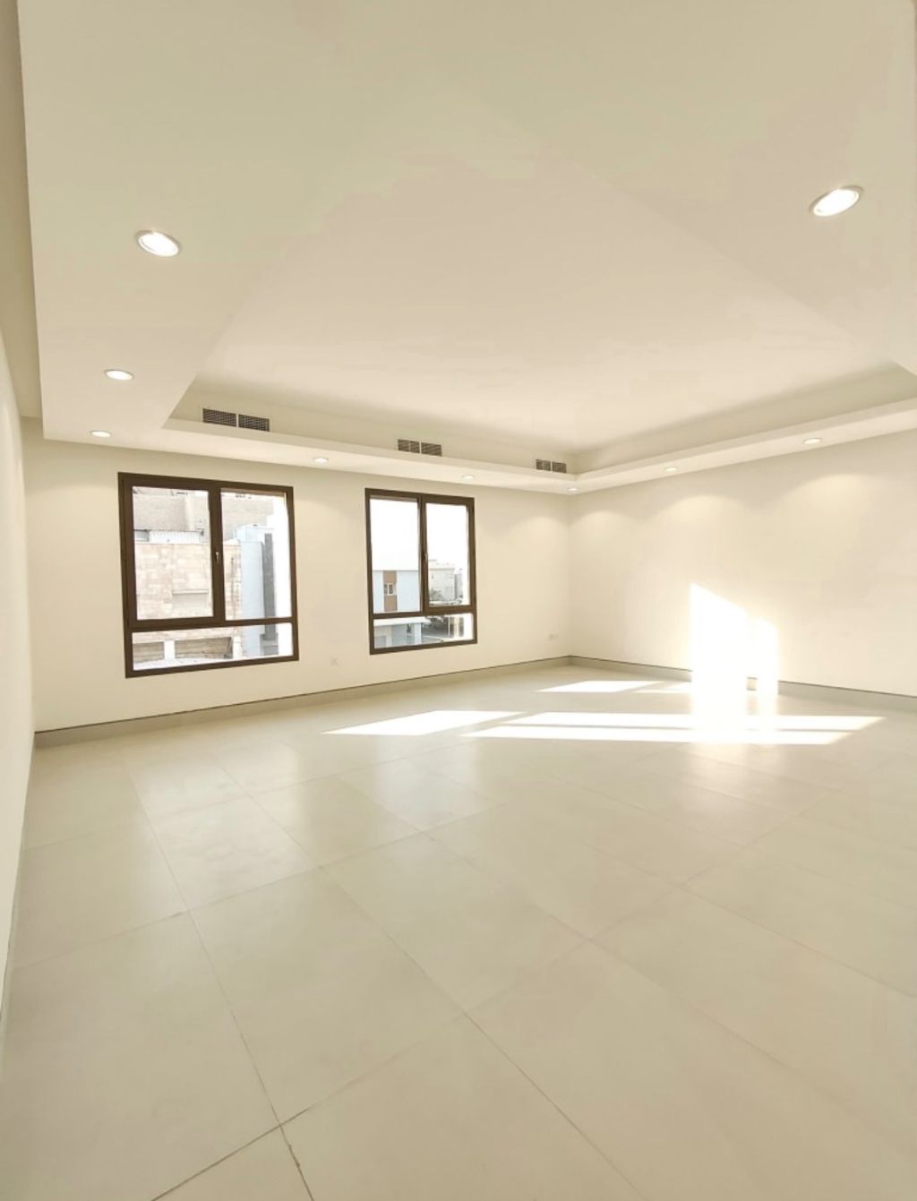 For rent: A new ground floor apartment in Kaifan, first occupant, VIP finishing. It consists of 5 bedrooms, including 3 master bedrooms, a large living room with a guest bathroom, a maid's room with its own bathroom, a laundry room, a storage room, 6 bathrooms, and 2 shaded parking spots. Rent: 1100 KD. Also available: First floor apartment for rent at 1000 KD. For contact.