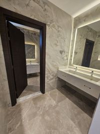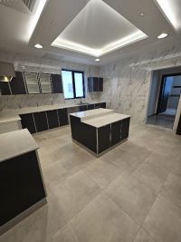 For rent, second floor, in Sabah Al-Salem, 4 rooms, 2 of them master, large hall, guest bathroom, large equipped kitchen, maid's room with bathroom, laundry room, balcony, elevator, parking, shades.