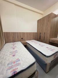 For rent furnished apartments. With modern design, multiple models (double bed or two beds) Apartment description and components fully furnished apartments with super deluxe finishing, featuring new furniture (first occupant) central air conditioning, and consisting of 1 bedroom (excellent space with built - in wall cabinets) 1 living room (equipped with a seating set and TV) 1 bathroom (complete