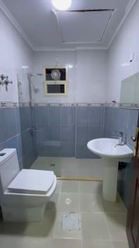 For rent: A ground-floor apartment in Mshref with deluxe finishing. It consists of 3 bedrooms, including a master bedroom, a large living room, a fully equipped kitchen, a maid's room, 3 bathrooms, a shaded parking spot, and a yard near the house. Rent is 450 dinars. For inquiries, please call.