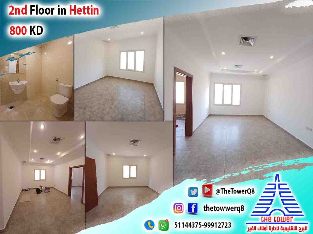 For rent in Hitteen, a large floor area - deluxe finishing - 6 bedrooms (including two master bedrooms - 4 rooms with two rooms sharing a bathroom) two living rooms - 2 kitchens - 2 domestic worker rooms - two shaded parking spaces. Rent 800 Kuwaiti Dinars. For inquiries.