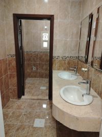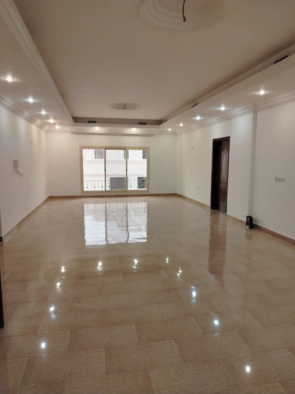 For rent in Al-Salam, Block 7, second floor with elevator. The unit consists of a living room and a salon with a guest bathroom and washbasins, large yards, two master bedrooms, two bedrooms with a shared bathroom, a fully equipped kitchen, a laundry room, a maid's room with a bathroom, and two shaded car parking spaces. The house was previously occupied by the owner. The rent is 800 Kuwaiti Dinars, final. Video recording is available.