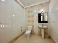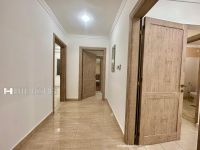 A three-bedroom apartment is available for rent in Salmiya. It contains three master bedrooms, a spacious living room, a guest bathroom, a maid's room with an attached bathroom, and a kitchen with cabinets. The rent is 500 Kuwaiti dinars. Terms and conditions apply. Broker fees and a refundable deposit are applicable.