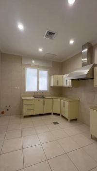 For rent: A luxurious floor with large areas in Al Zahra, a prime location on a main street with easy access. First floor with elevator. Super deluxe finishing. Owner's residence. It consists of 4 large master bedrooms, a large living room with laundry and guest bathroom, a fully equipped kitchen, a domestic worker's room with its own bathroom, and two parking spaces. There is a yard. Rent is 800 KD final. A small family is required. For contact.