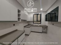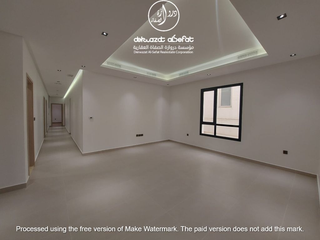 For rent: First-floor apartment in Bayan, Area 4. New apartment, first occupant. Includes a driver's room. Consists of 5 bedrooms, including 3 master bedrooms with bathrooms, and 2 bedrooms with bathrooms. Features two living rooms with a guest bathroom, a large kitchen, a maid's room with a bathroom, and a laundry room. Two shaded car parking spaces. Rent: 1100 dinars. New code: 6227. For contact - Commercial license number / 1234 - 2013.