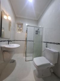 For rent: An apartment in Al-Salam, first floor with elevator. Prime location near the mosque and a cooperative society branch. Super deluxe finishing, large spaces. 3 bedrooms including a master bedroom and two bedrooms with a shared bathroom. Large living room with guest bathroom. Equipped kitchen. Maid's room and laundry room. 4 bathrooms. Central air conditioning. Central satellite system. Central boiler. Two car parking spaces. Rent: 550 dinars inclusive. For contact: Abu Sultan.