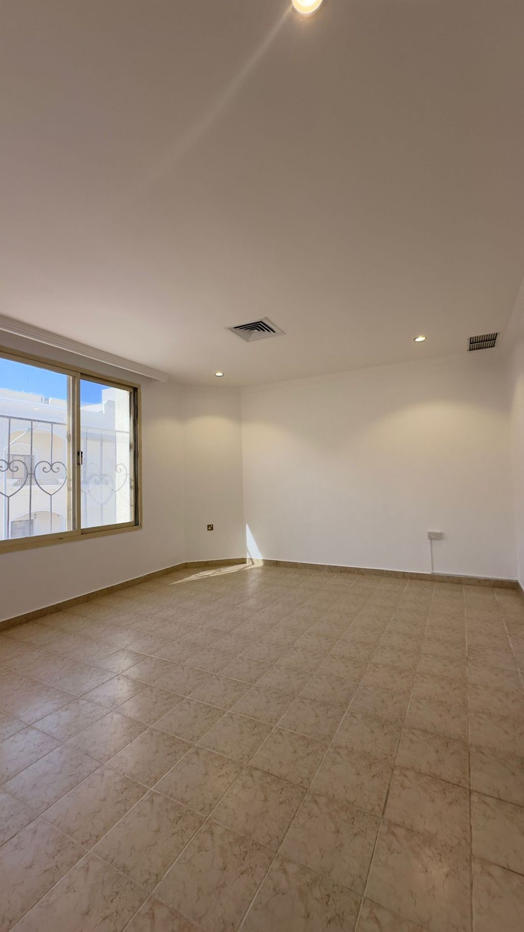 For rent: A one-and-a-half-floor apartment in Al Zahra with a private entrance on the first floor, including the roof, without an elevator. It has 4 bedrooms, including a master bedroom, a large living room, a kitchen, a maid's room with a bathroom and laundry area, central air conditioning, two shaded car parking spaces. Rent is 800 dinars.