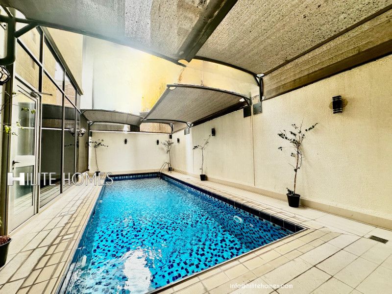 A semi-furnished apartment with two master bedrooms is available in the Sabah Al-Salem area. It includes a living room, two master bedrooms, a guest bathroom, a closed equipped kitchen, a shared swimming pool, a gym, a cinema, and a parking space. The rent is 475 Kuwaiti dinars. Terms and conditions apply. Real estate agent fees and deposit are applicable.