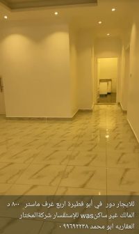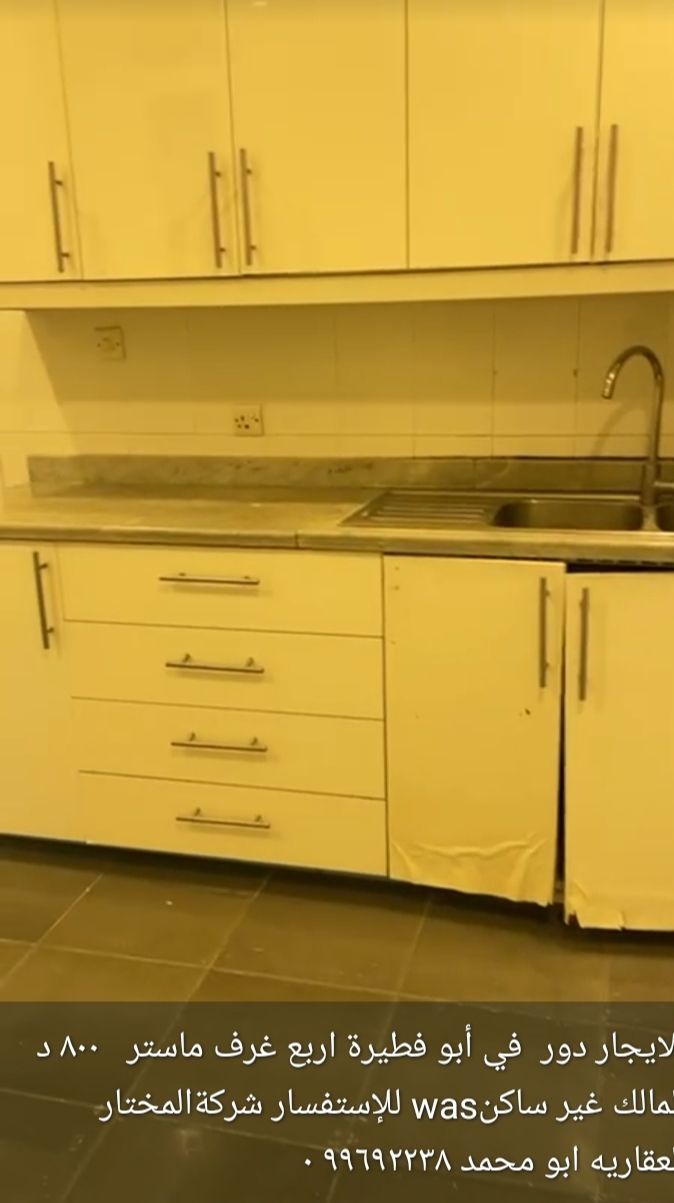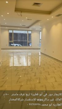 For rent: a floor in Abu Fatira with four master bedrooms. Rent is 800 dinars. The owner is not residing there. For inquiries, contact Al-Mukhtar Real Estate Company, Abu Muhammad.