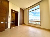 A 2-bedroom semi-furnished luxury apartment in Salmiya. It includes 1 master bedroom, 1 regular bedroom with a shared bathroom, built-in wardrobes, 1 living hall, shaded car parking, a swimming pool, a fitness hall, and security. Services include internet, phone service, newspaper delivery, and maintenance service. There is a grocery store nearby. Rent is KD650 (open-type kitchen). Realtor fee applicable.