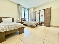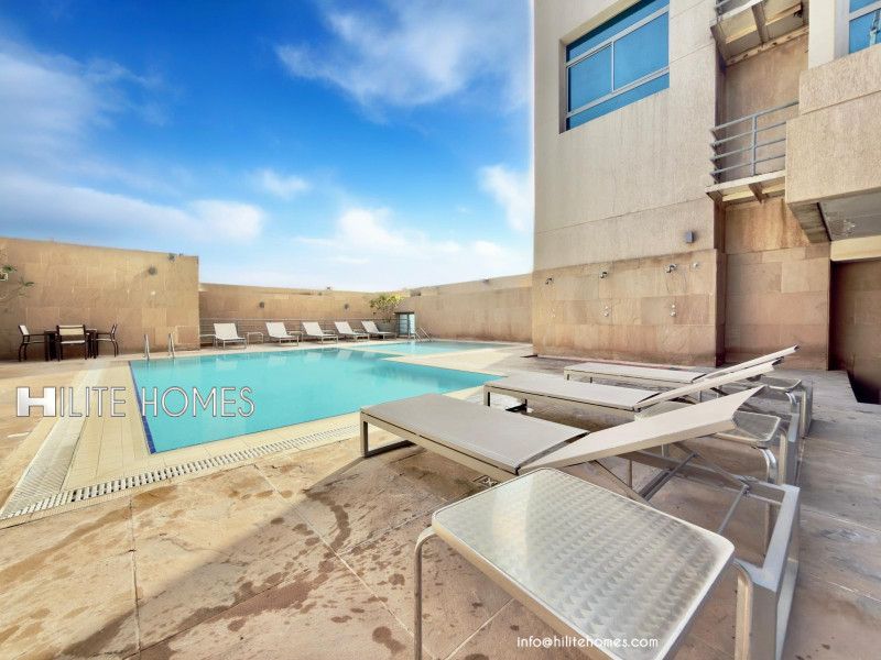 A three - bedroom sea view furnished duplex is available for rent in Salmiya. It is located on the ground floor and is fully furnished with a sea view. Features include a big living room with a dining area, guest toilet, a maid's room, and a kitchen. The first floor has one master bedroom and two regular bedrooms, each with a bathroom. Shared amenities include a swimming pool and gymnasium. Parking