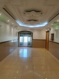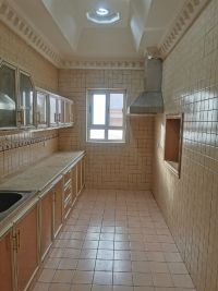 For rent: An apartment in Al-Rumaithiya on the second floor with an elevator. It consists of a living room, 3 bedrooms (including one master bedroom), two bedrooms sharing a bathroom, a small balcony, a fully equipped kitchen, and two adjacent parking spaces. Rent is 450 Kuwaiti Dinars. Brokers are prohibited.