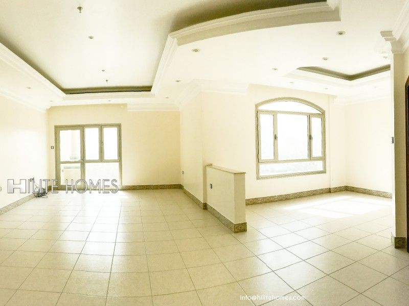Spacious apartment with a view for rent in Salmiya. It features 1 master bedroom, 2 regular bedrooms with a shared bathroom, built - in wardrobes, a maid's room with a bathroom, a big living hall, a separate dining hall, an equipped kitchen, a laundry room, a big balcony with a view, a BBQ area, terrace, a gym, a pool, a kids'play area, and assigned parking. Available on a semi furnished basis. This