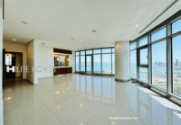 A luxury semi-furnished 3-bedroom full-floor apartment with a sea view is now available for rent in Salmiya. It features 3 master bedrooms with built-in wardrobes, a living hall with dining area, a big kitchen, a balcony, a rooftop pool, and basement parking. The rent is KD 1350.