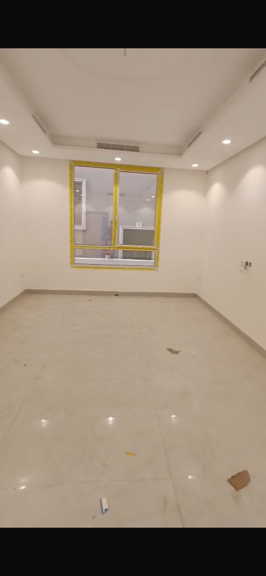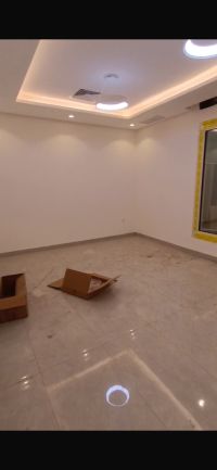 For rent in Abu Fatira, first floor, new finishing with balconies. The floor consists of 4 master bedrooms, a living room, a domestic worker's room with a bathroom, a laundry room, a refrigerator room, a large equipped kitchen, and two car parking spaces. Rent: 800 Kuwaiti Dinars.