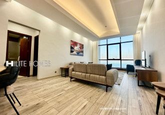 Modern fully furnished and unfurnished two-bedroom apartment in Bneid Al Qar. Fully furnished two-bedroom serviced apartment with two bathrooms. Spacious living hall with dining area. Equipped open-plan kitchen with counter. Facilities include gym and pool. Satellite and internet. Assigned parking. Housekeeping service. Walking distance to the city. Rent KD800 - KD850. Realtor fee applicable.