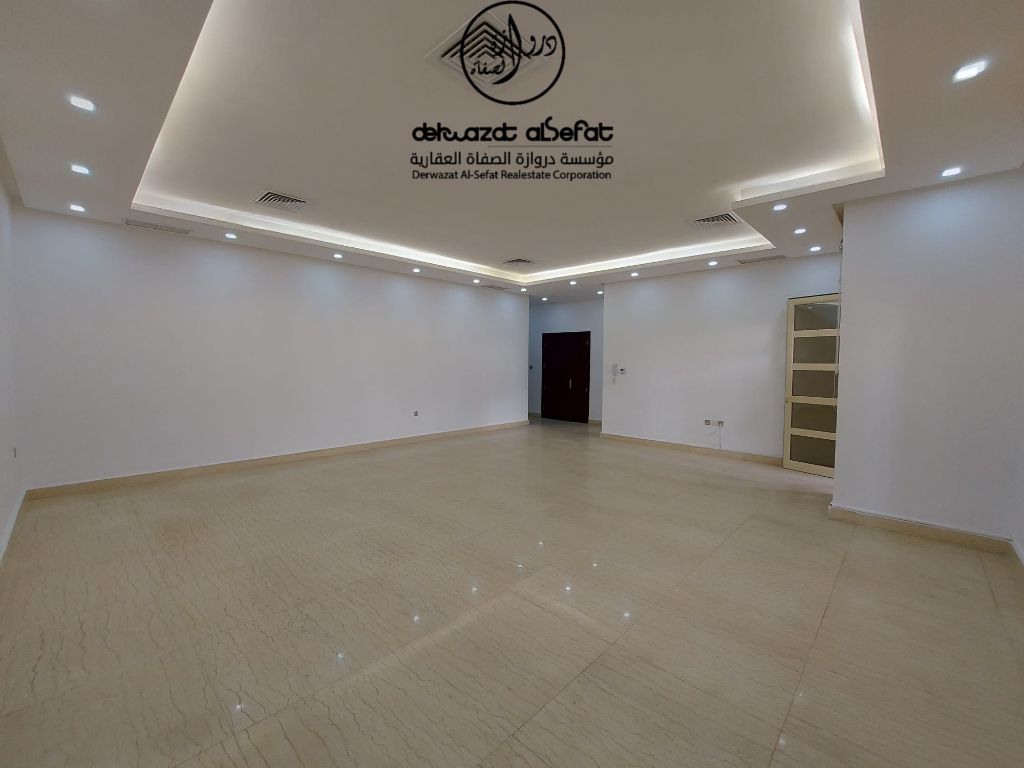 For rent: A ground floor unit in Fintas, Block 7, with a private entrance. It consists of a large living room with laundry facilities and a guest bathroom, 4 bedrooms, 2 master bedrooms with bathrooms, a kitchen, a maid's room with a bathroom, a laundry room, a small storage area, and 2 shaded parking spaces. Rent: 725 dinars. New code: 6391. For contact: Commercial license number / 1234 - 2013.