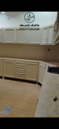 For rent in Al-Shuhada, Piece 4, a ground floor unit consisting of 4 rooms, 3 bathrooms, a hall, a salon with a guest bathroom, laundry areas, a fully equipped kitchen, a maid's room with a bathroom, and 3 covered parking spaces. Rent is 900 KD, new code 6447. For contact - Commercial license number / 1234 - 2013.