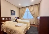 Fully furnished serviced apartment in Jabriya. Spacious living room, two bedrooms (including one master bedroom), two bathrooms, shutter-type windows, equipped kitchen, housekeeping service, WiFi, satellite TV, shared swimming pool and gymnasium, basement parking. Rent: KD650.