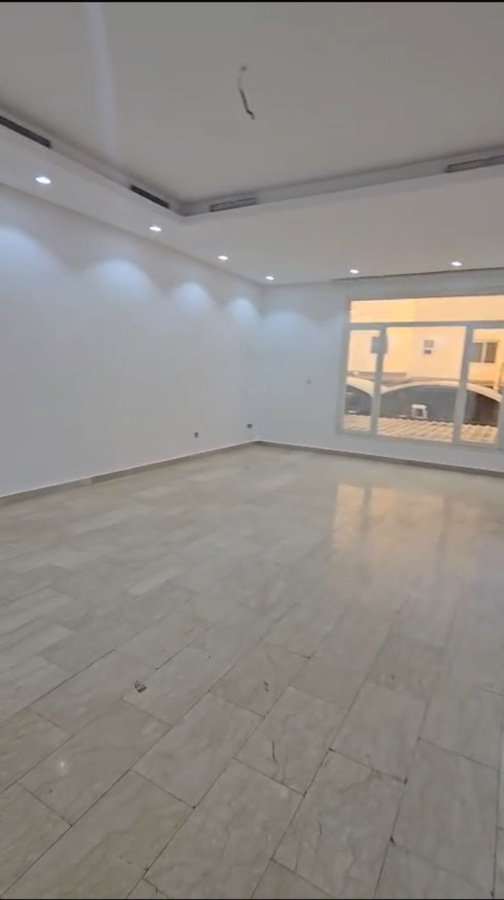 For rent in the Rawda area, a ground floor unit with a courtyard and private entrance. It contains 4 bedrooms, including two master bedrooms and two bedrooms sharing a bathroom. It also includes a living room with laundry facilities, a guest bathroom, a maid's room with a bathroom, and a kitchen. The rent is 800 Kuwaiti dinars.