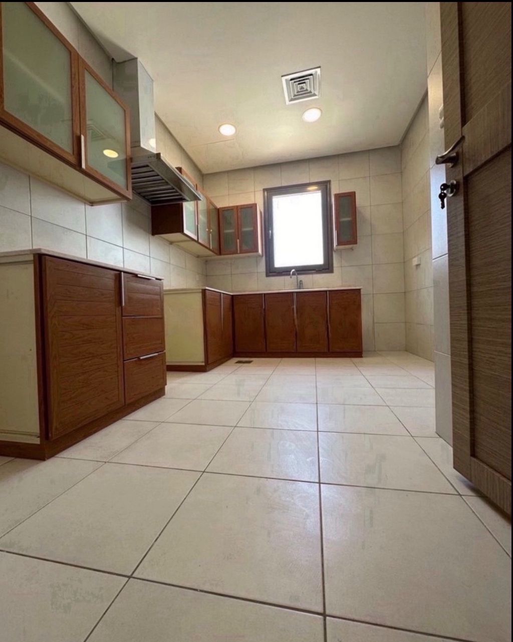 Hurry up! For rent: A ground floor apartment in Al-Rumaithiya with VIP finishing. It consists of 3 bedrooms, including 1 master bedroom and 2 bedrooms with a shared bathroom, a large living room, a storage room, a fully equipped kitchen, a maid's room with its own bathroom, and two shaded parking spaces next to each other. The rent is 600 Kuwaiti Dinars. For contact.