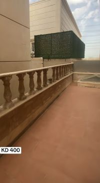 For rent: An apartment in Hitteen, first floor with elevator, large area, deluxe finishing. It consists of two bedrooms, a living room, a fully equipped kitchen, a maid's room, three bathrooms, and a parking space. Rent is 400 dinars, available for divorced women. For contact.