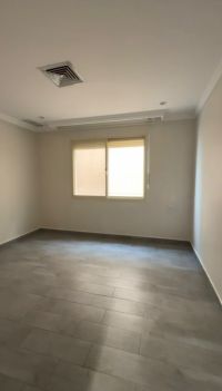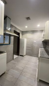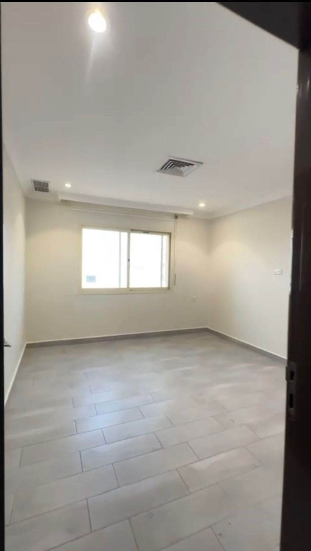 For rent, an apartment in Al-Rumaithiya, first floor, with an elevator, super deluxe finishing. It consists of 3 bedrooms, including a master bedroom, a large living room, a fully equipped kitchen, a maid's room with its own bathroom, and 3 bathrooms. Two parking spaces. Rent is 450 dinars. For contact.