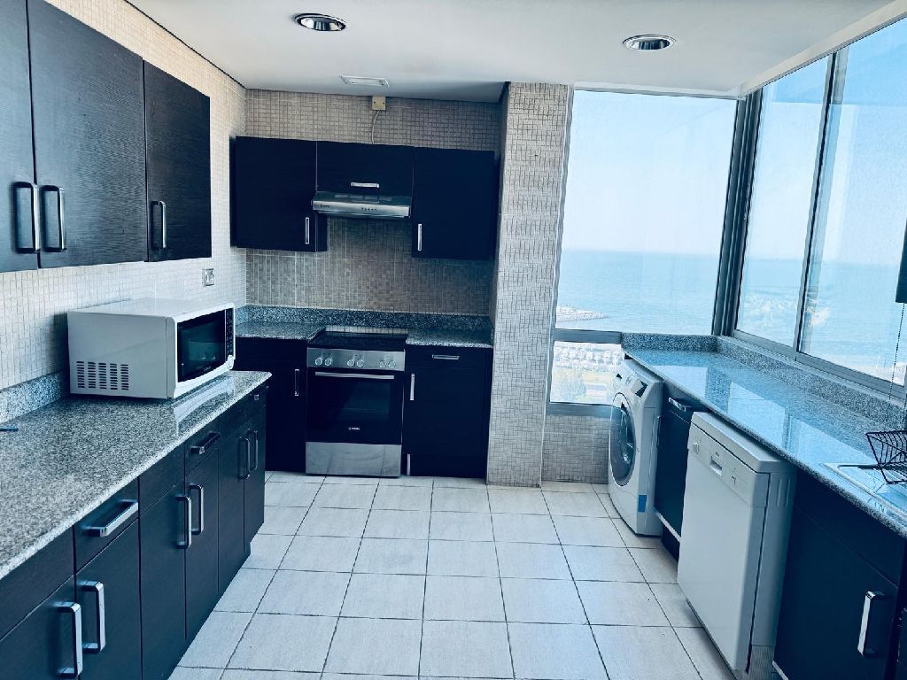 For rent, a furnished apartment in Salmiya with a direct sea view. A unique opportunity for living in a prestigious location in Salmiya directly on the sea. Apartment details: two bedrooms, a large living room, two bathrooms, a kitchen, fully furnished, direct sea view. Features: a prime location close to all services, suitable for all nationalities, comfortable living with a wonderful sea view. Rent is 900 dinars per month.