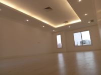 For rent: A large apartment in Al-Rawdah consisting of a living room with electric shutters and parquet flooring, 3 bedrooms including a master bedroom with a private bathroom and two bedrooms sharing a common bathroom, a maid's room with a bathroom, a fully equipped kitchen, and 3 shaded parking spaces side by side. Rent is 700 Kuwaiti dinars. Brokers are prohibited.