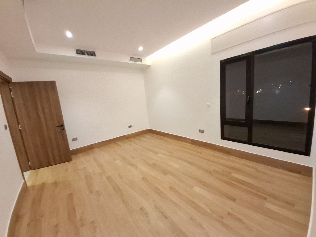 In Al-Sadeeq, a modern apartment located on a square and a residential roundabout in an upscale area. It consists of 3 rooms, including a master bedroom, a domestic worker's room, a living room with a guest bathroom, a dedicated laundry area, a kitchen equipped with a stove and oven, two parking spots (some shaded) and an additional roundabout square. The location is near all services and easily accessible to all roads. Rent: 650 KD, security deposit: half a month's rent. Dar Al-Iqlimi for Real Estate Brokerage, License Number: 2018/133503.