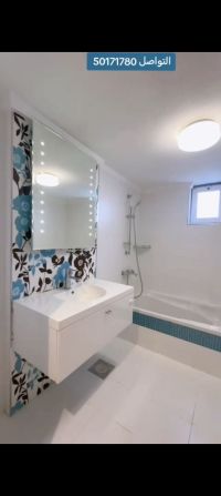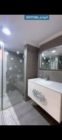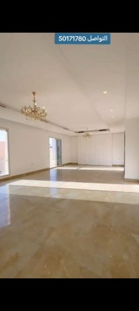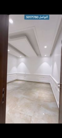 For rent in the Surra area (first floor). It consists of 4 rooms (2 master rooms + 2 rooms with a shared bathroom), a large living room, a large balcony, a guest bathroom, a maid's room with its own bathroom, a laundry room, a preparation kitchen, and a main kitchen. 2 adjacent parking spots in the basement. Central air conditioning, central heaters, central exhaust fans, all windows have electric shutters, elevators, and a private entrance for tenants. Rent is 1000 KD. Video available. Contact for more information.