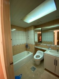 For rent, an apartment in Salmiya, Block 5, with two rooms including a master bedroom, a living room, a bathroom, a kitchen, and two parking spaces. One month free rent. Monthly rent is 380.