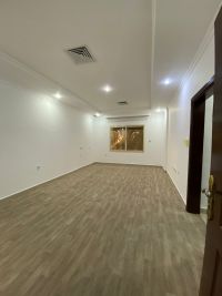 For rent: A ground floor apartment in Al-Mishref with three bedrooms, including a master bedroom, a maid's room, a living room with a guest bathroom, and a parking space. Rent: 470 KWD.