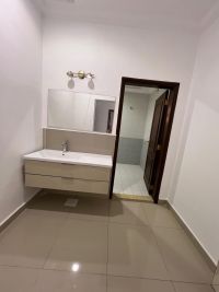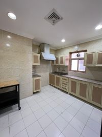 For rent: First floor with elevator in Al-Salam area. It consists of 4 bedrooms, including 2 master bedrooms, a living room, a fully equipped kitchen, a maid's room with a bathroom, a laundry room, shutters, deluxe finishing, 4 bathrooms, 2 shaded parking spots, and very easy access. Rent: 700 dinars. For contact.