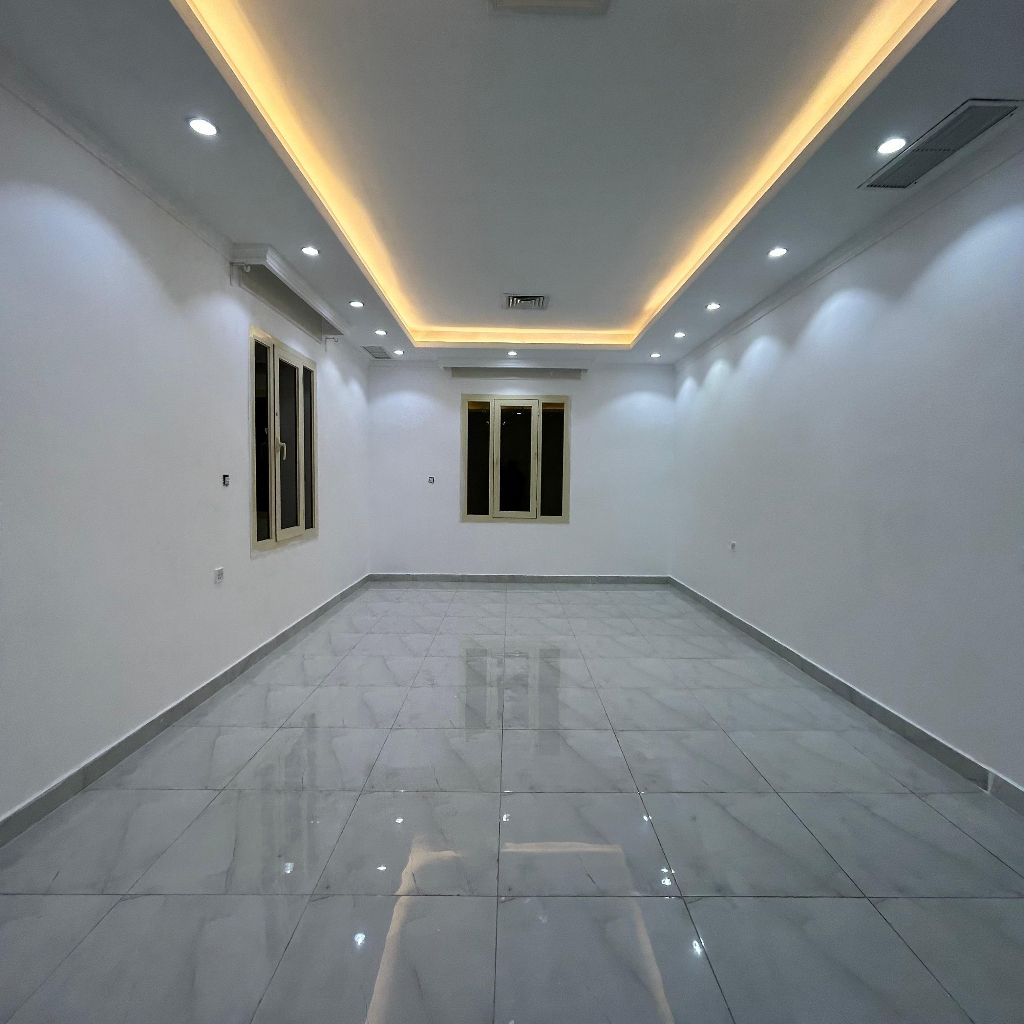 A residential apartment for rent in Al-Rumaithiya, prime location, excellent finishing. It consists of a hall, kitchen, 4 master bedrooms, total of 6 bathrooms including a guest bathroom, a maid's room with its own bathroom, laundry room, elevator, 2 dedicated parking spaces, inclusive of water, electricity, and air conditioning maintenance. Rent is 650 Kuwaiti Dinars, with a half-month security deposit + company commission.