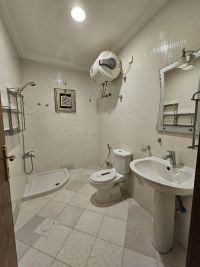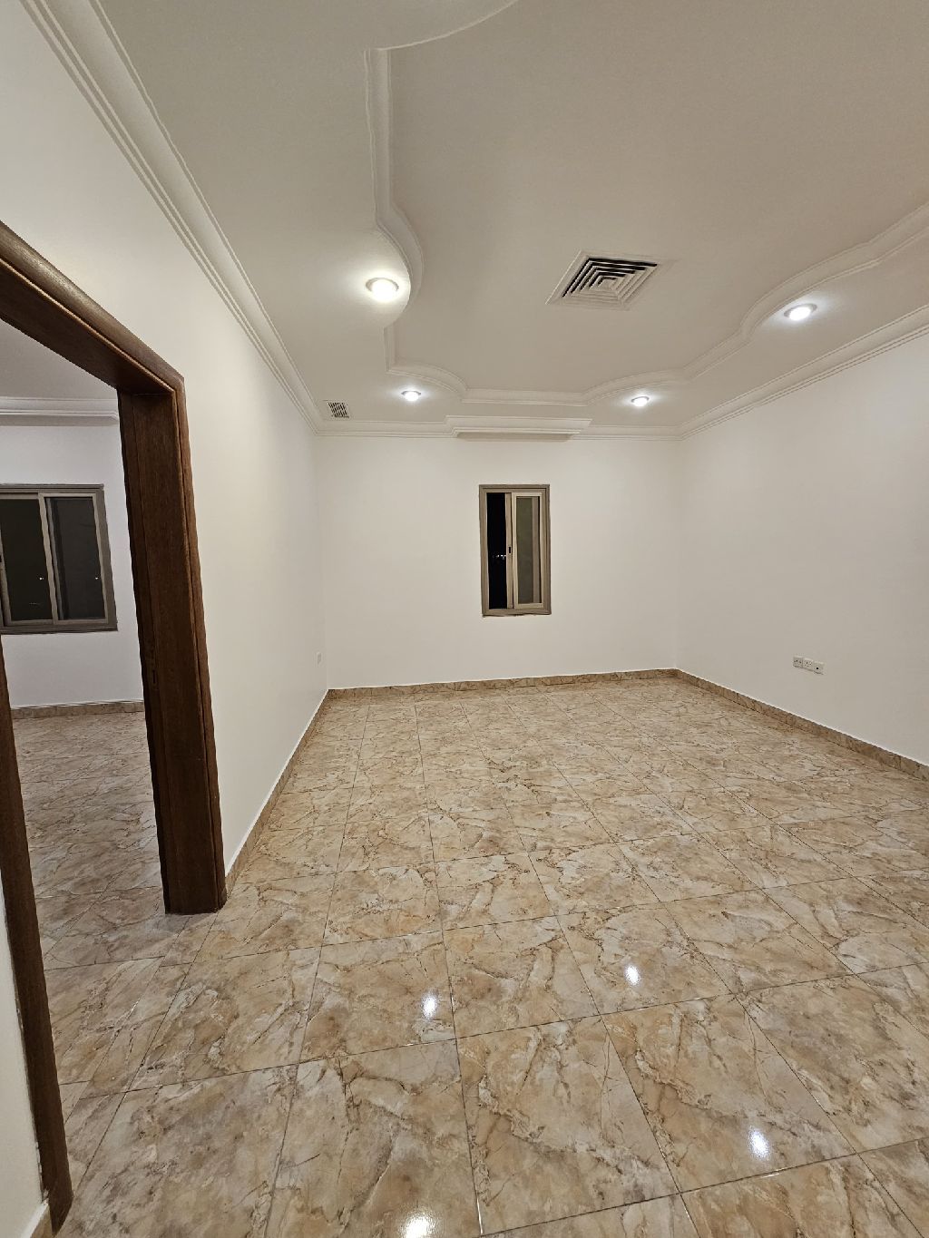For rent: An apartment in Bayan, Area 7, on the third floor with an elevator, central air conditioning, super deluxe finishing, close to services, easy access, two covered parking spaces, and everything centralized. The apartment consists of two bedrooms, including a master bedroom, a living room, an external bathroom, a kitchen, a maid's room with its own bathroom, totaling three bathrooms. The rent is 450 Kuwaiti dinars, inclusive of everything. Note: The landlord's condition is a small Kuwaiti family. If there is no response, please leave a message.